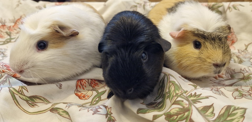 Alvin, Simon, and Theodore are three male guinea pigs, approximately 1 year old, who are looking for loving forever homes.