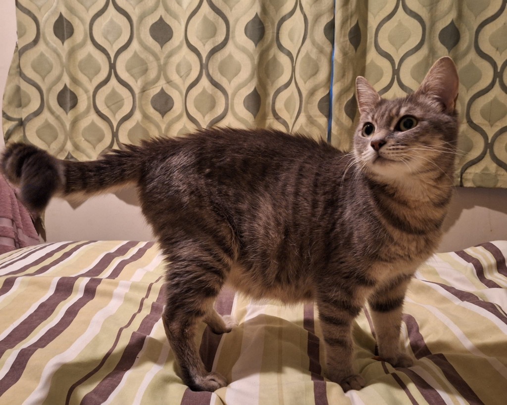 She’s incredibly affectionate and adores human company. If you’re sitting down, expect Coco to be right there beside you, soaking up all the love she can get. She forms lovely bonds with her people and has the sweetest, most unusual little miaow — it almost sounds like she’s trying to have a conversation with you! It’s her adorable way of making sure you know she’s there.