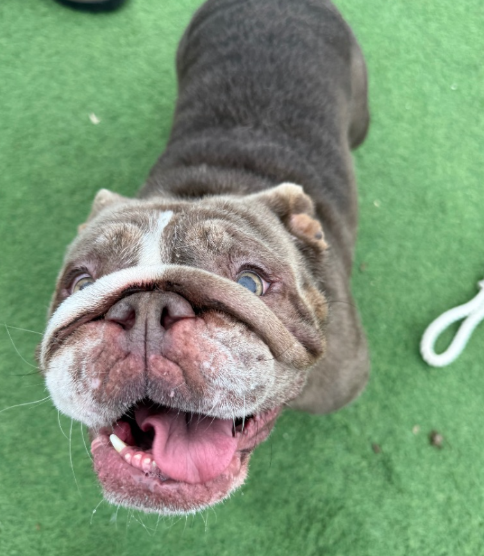 Mabel will be available very soon. She has previously lived in a busy household with many other dogs. She would thrive in a quieter setting where she can enjoy being a pampered princess. She is incredibly gentle and loving, her favourite place to be is cuddled up to you. Mabel could live with another dog (female or neutered male only) and is best suited to older children / teens only. Mabel is worried by fast moving traffic so access to lovely quieter walks is essential. Mabel must be rehomed to a family that can commit to her on going care (cleaning skin folds, ear care etc) and that are experienced with bulldogs in terms of exercise and expenses.
