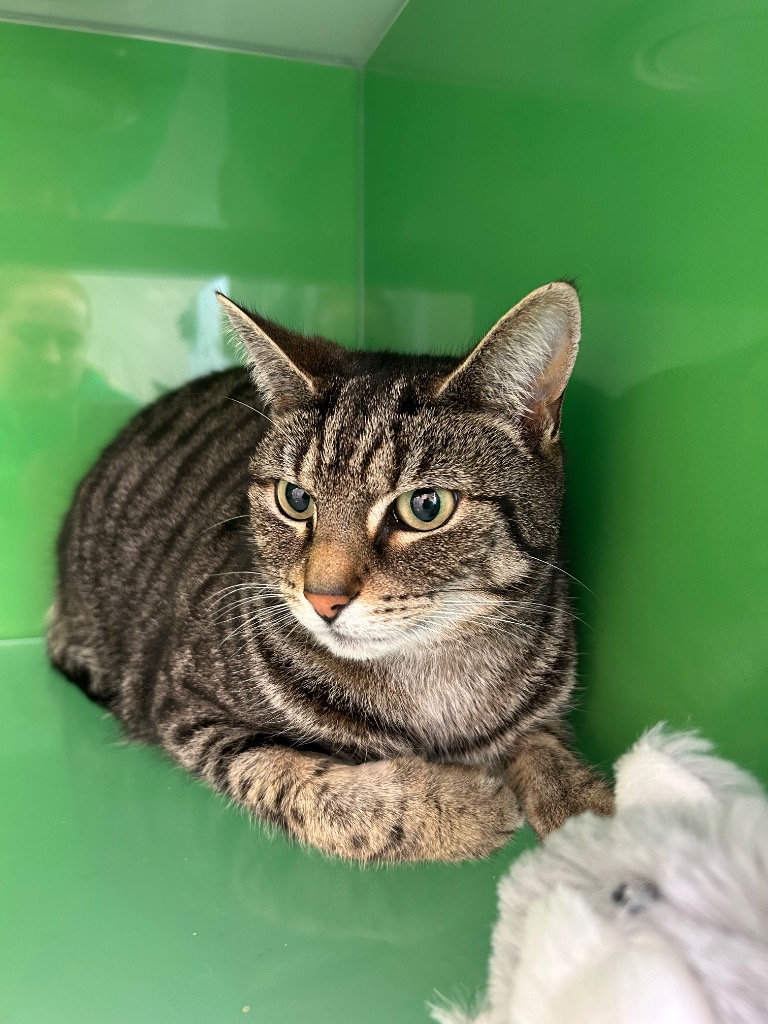 Nyla is a 5-year-old cat who was sadly relinquished to us through no fault of her own. She has found cattery life quite stressful, so she will need a quiet home where she can feel safe and settle in at her own pace.