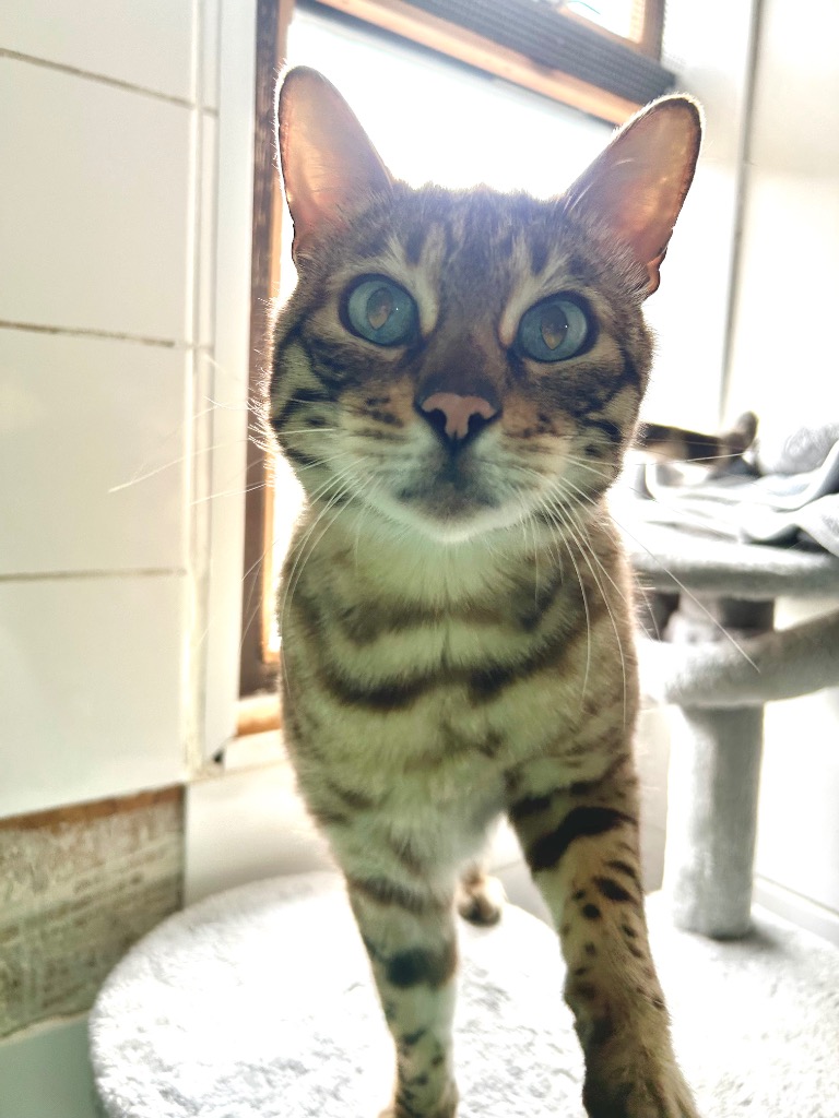 Otis is a striking Bengal cat with a big personality to match his beautiful markings. He has sadly been relinquished to us after struggling to get along with neighbouring cats. Otis isn’t a fan of sharing his outdoor territory and made it very clear he prefers his own space!