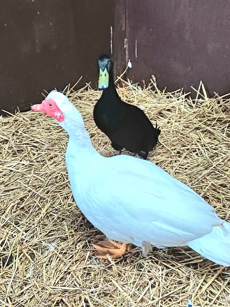 Quack Efron and his best friend Ronnie are a lovely pair of ducks who have spent many years together on a large pond. They have unfortunately had to move on and are looking for a new pond to call home. Quack Efron is a white Muscovy and Ronnie is a stunning green Runner Duck mix. They love nothing more than spending all day swimming together. If you have a large pond and space for this adorable duo please get in touch.
