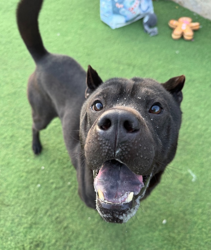Sid, AKA super Sid! Sid has an old leg injury, at first we suspected a deformity but it appears to be an old fracture that has healed in a traumatic way – despite the agonising pain he must have been in he is an absolutely lovely, friendly and happy boy who is full of love and life. He can be reactive to some dogs but pass others happily so it really depends on others. Teens 14+ due to an unknown history. He is quite short /more medium sized than large! (the image is deceiving)