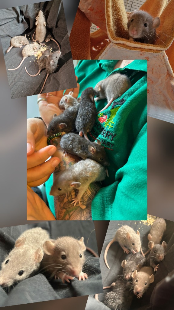 We’ve got a seriously adorable bunch of rat babies! These six curly haired sweethearts are nearly 4 weeks old and will be ready to head off to their forever homes once they hit 6 weeks.