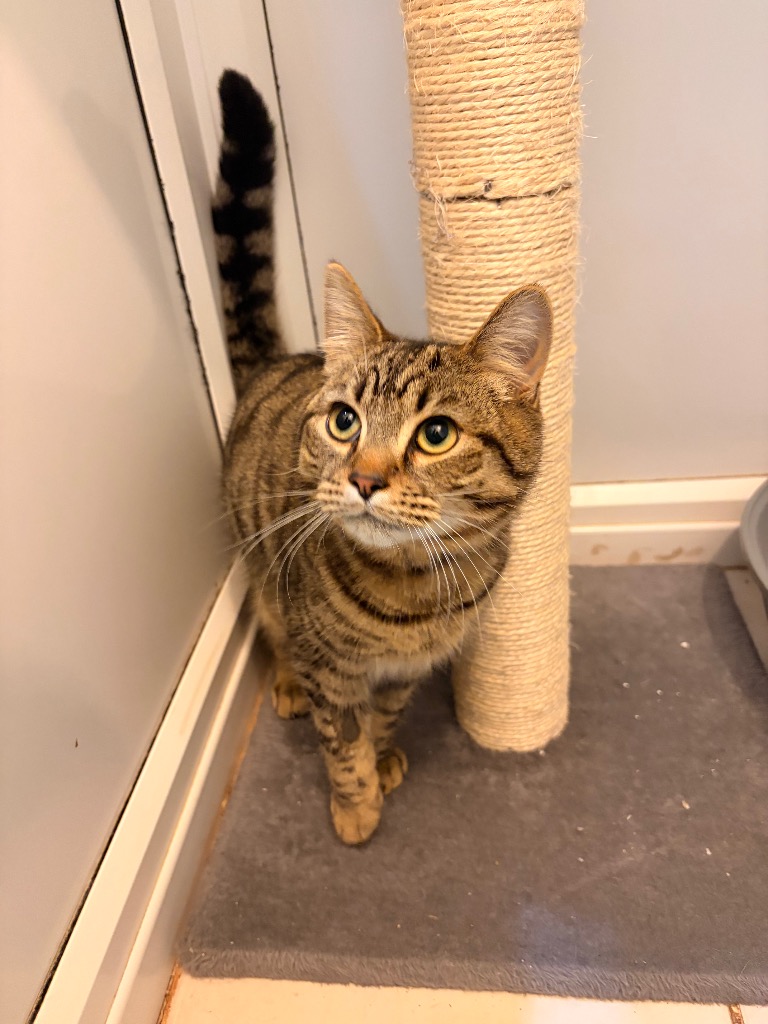 Tripod is currently lame on one of his forelimbs. He’s receiving pain relief, and we’re monitoring him closely, but there is a chance that he may one day need his leg amputated — which could see him truly living up to his name. If that happens, please don’t let it put you off. Tripod cats adapt incredibly well and go on to live full, happy lives.