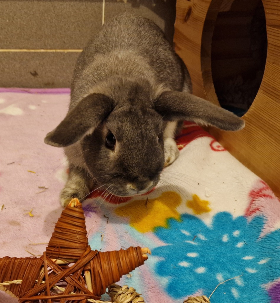 All rabbits need a spacious, secure enclosure no smaller than 3m x 2m by 1m high but the bigger the better! A quiet environment with fresh hay, veggies, and enrichment.