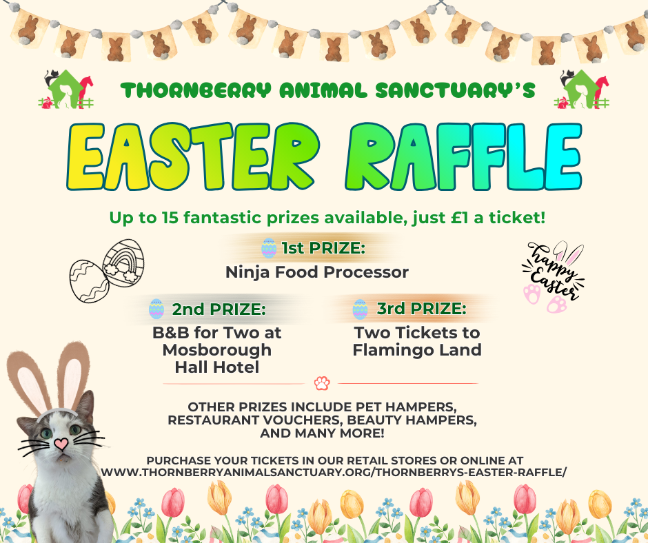 This Spring, take part in Thornberry’s Easter Raffle and be in with a chance to win fabulous prizes! For just £1 a ticket, you could be one of our lucky winners and make this Easter even more special.